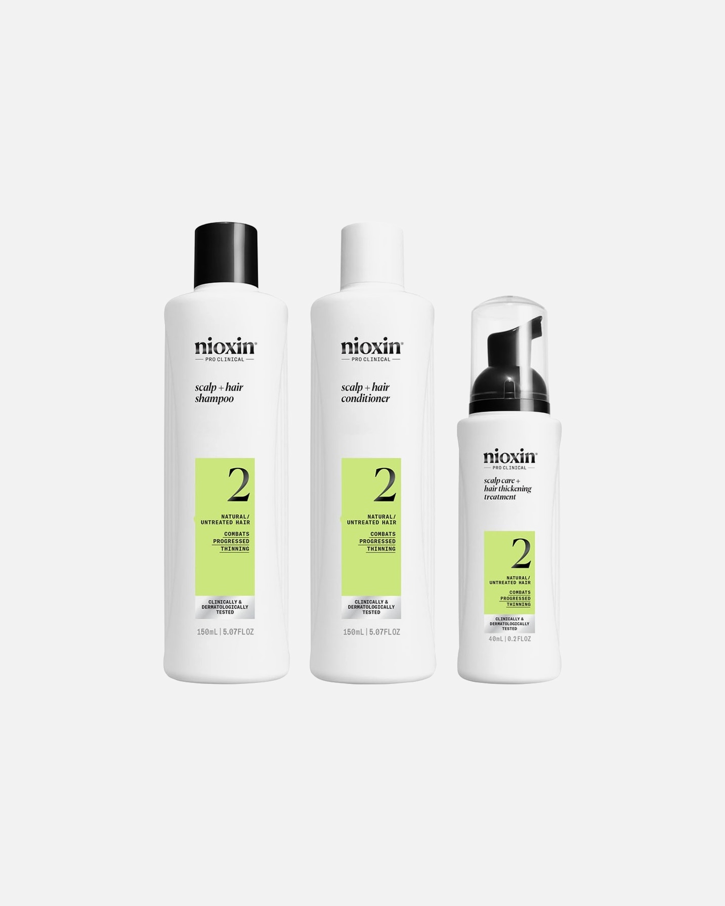 Ogni trattamento, inclusi quelli del Sistema 2, Sistema 3, Sistema 4 e Sistema 5 (mano a mano che il numero cresce, sono pensati per diradamenti maggiori) sono disponibili anche nel Kit Trifasico, composto da shampoo, balsamo conditioner e trattamento leave-in.