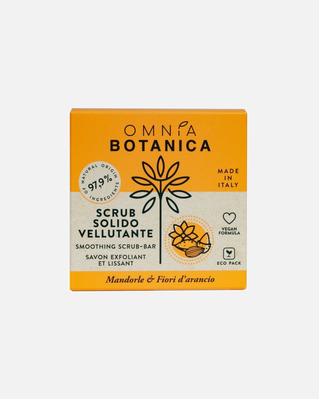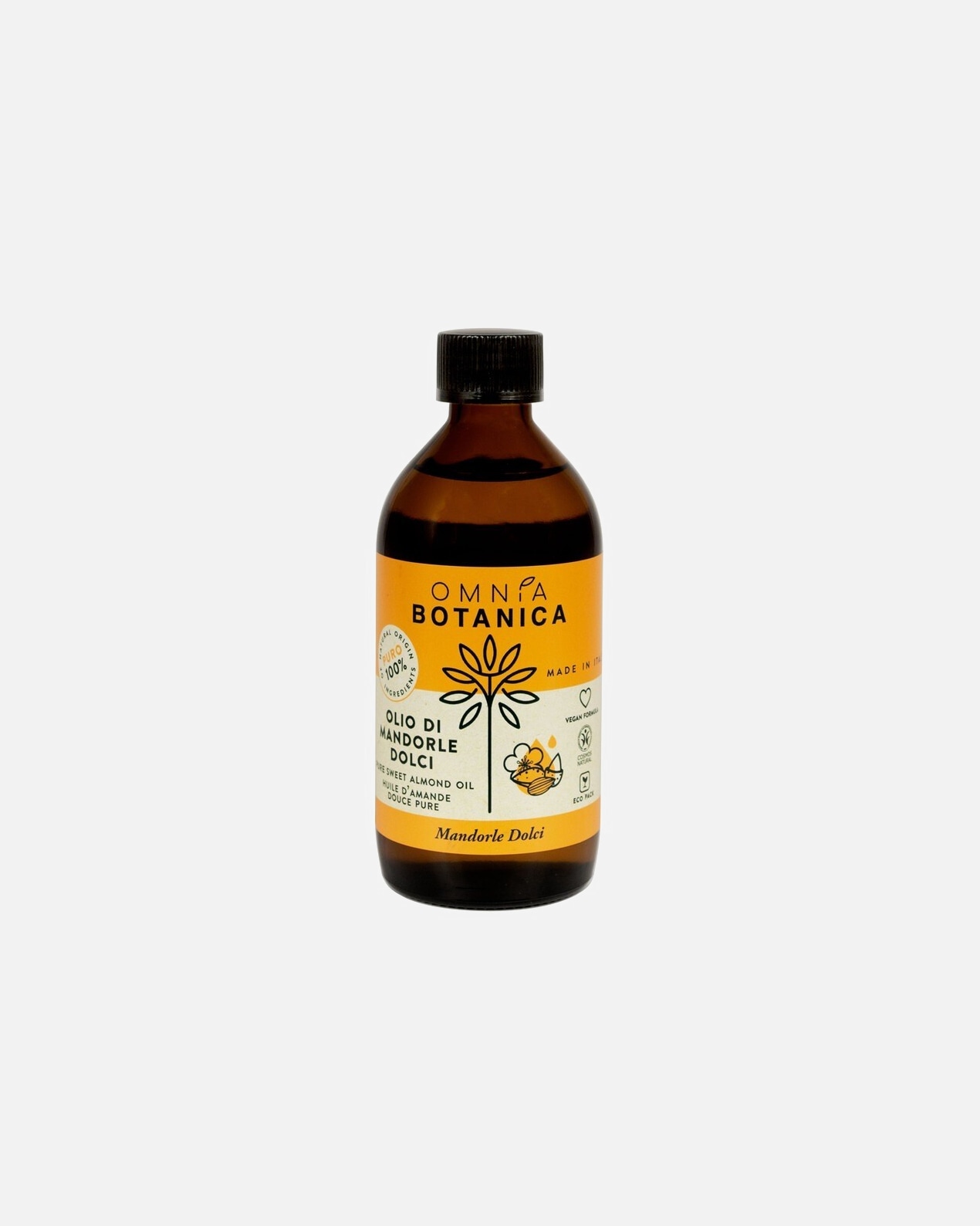 Omnia Botanica olio di mandorle e fiori d’arancio: l’olio di mandorle è un portentoso idratante, spesso usato anche per prevenire la comparsa di smagliature o, in generale, per migliorare la struttura della pelle. L’aroma di fiori d’arancio ha un effetto calmante e rinfrescante.